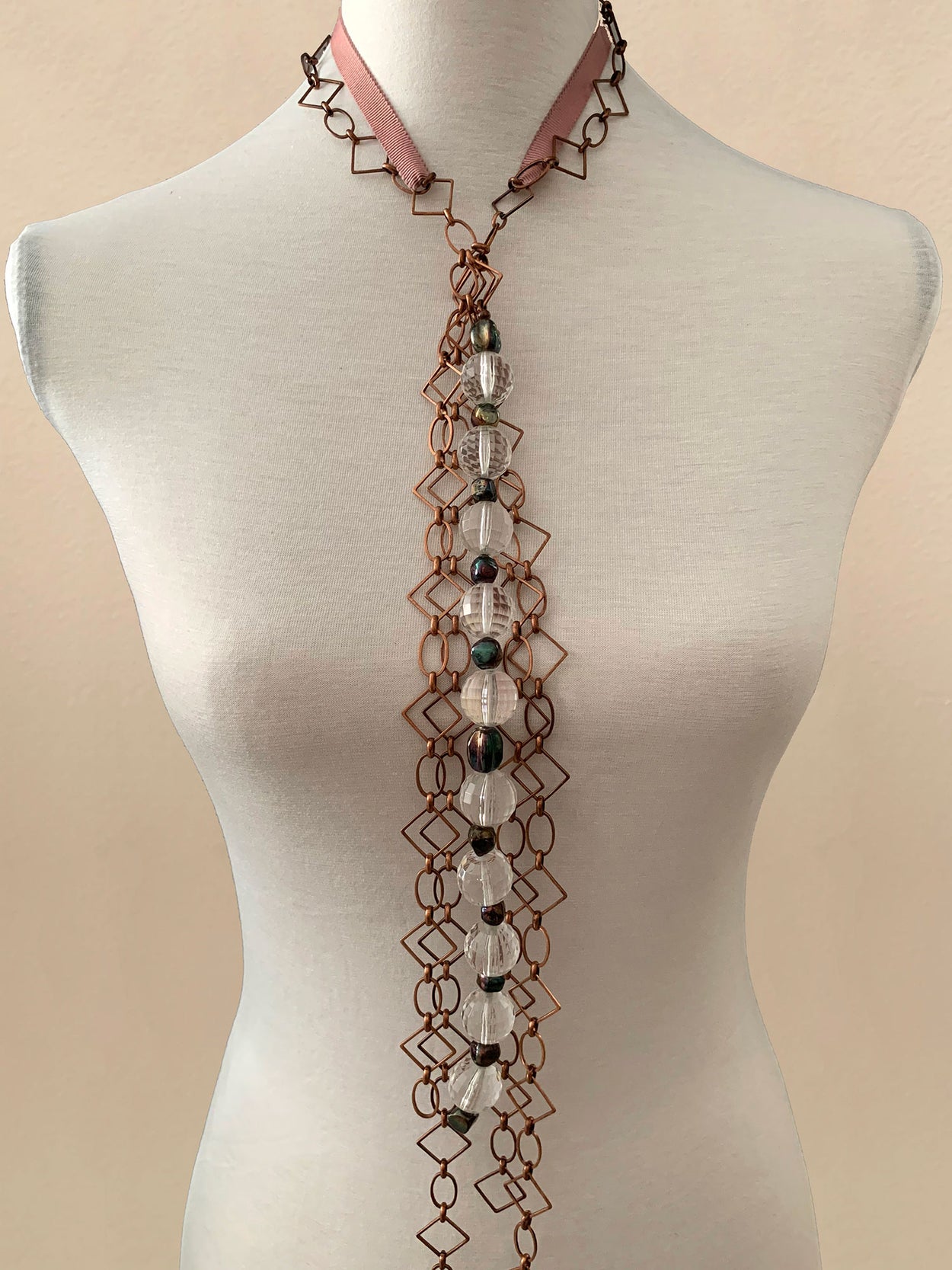 3 years ago I started working with vintage jewelry, interesting found metallic objects, period pieces and special beads. The concept is deconstructive/reconstructive, combining sculpting, couture and design. I have since created 150 vintage, medieval, industrial and futuristic Tie pieces.