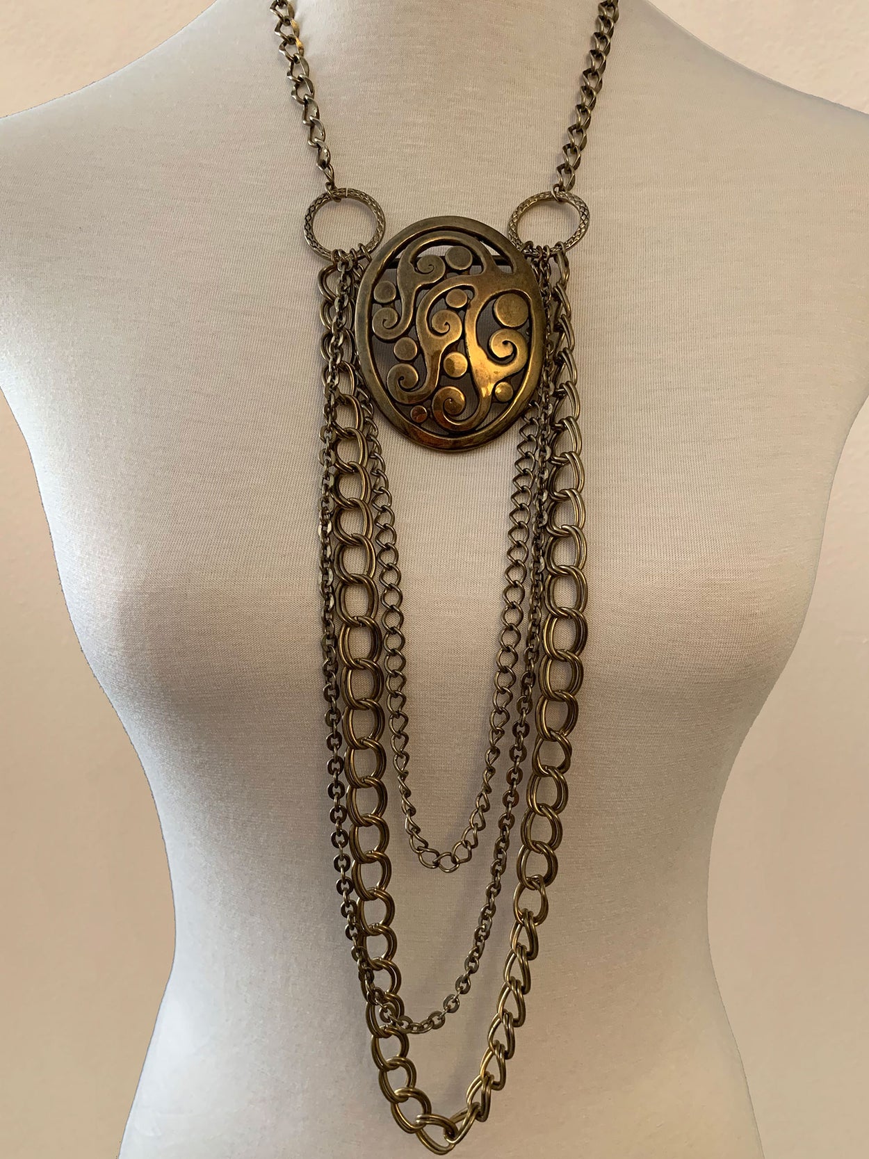 3 years ago I started working with vintage jewelry, interesting found metallic objects, period pieces and special beads. The concept is deconstructive/reconstructive, combining sculpting, couture and design. I have since created 150 vintage, medieval, industrial and futuristic Tie pieces.