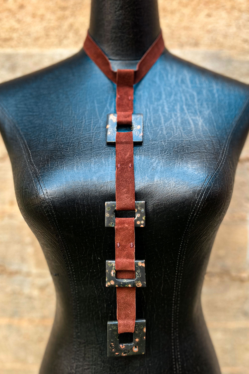 Handcrafted by the indigenous Amazigh Tribes of Morocco, this silver piece embodies tradition and cultural heritage. The accompanying tie, made from sensual suede in a variety of colors, infuses a classic yet uniquely contemporary touch to this gender-neutral accessory. Designed for travel convenience, in a compact box for easy transport and it's surprisingly lightweight.