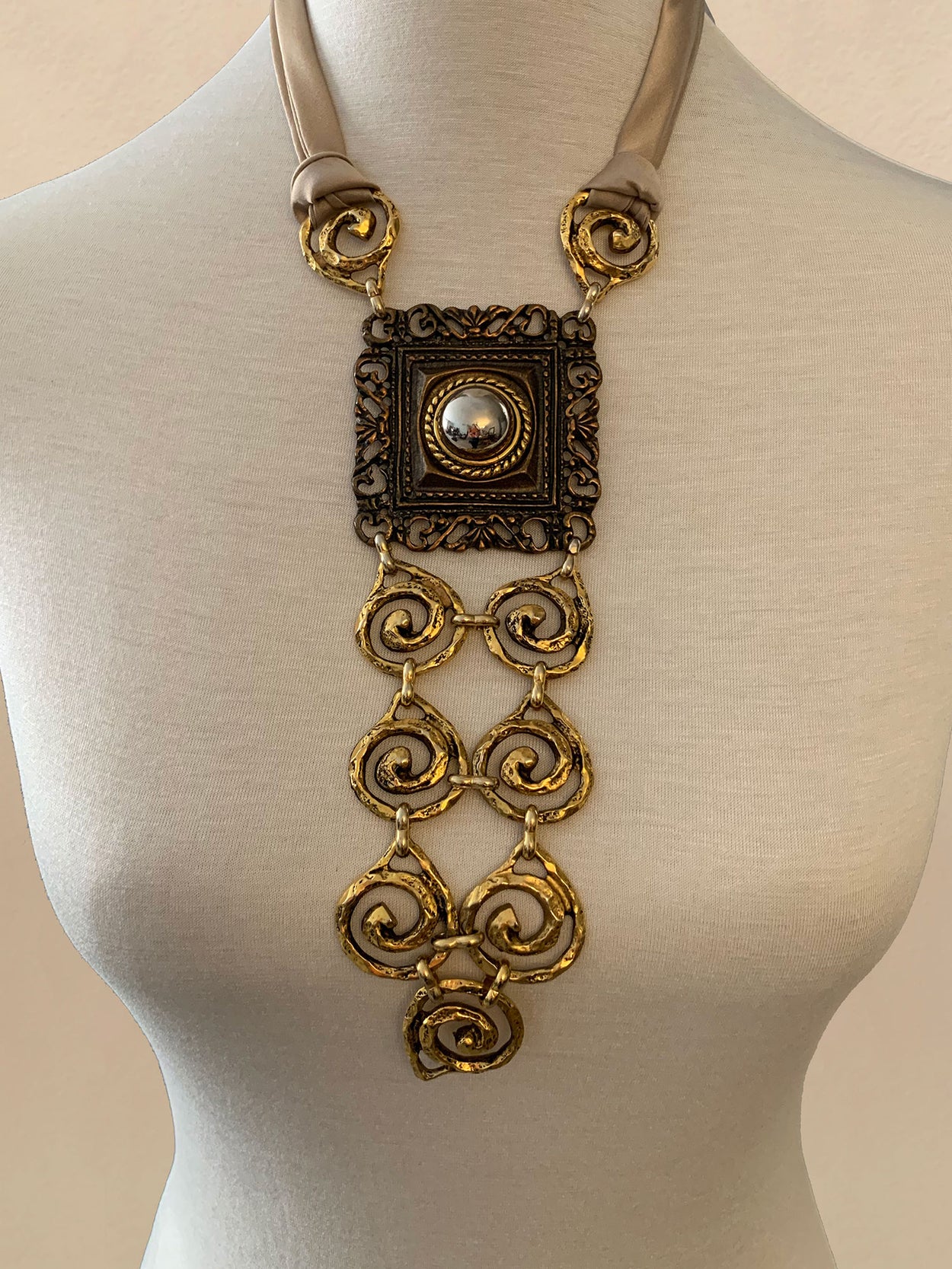 3 years ago I started working with vintage jewelry, interesting found metallic objects, period pieces and special beads. The concept is deconstructive/reconstructive, combining sculpting, couture and design. I have since created 150 vintage, medieval, industrial and futuristic Tie pieces.