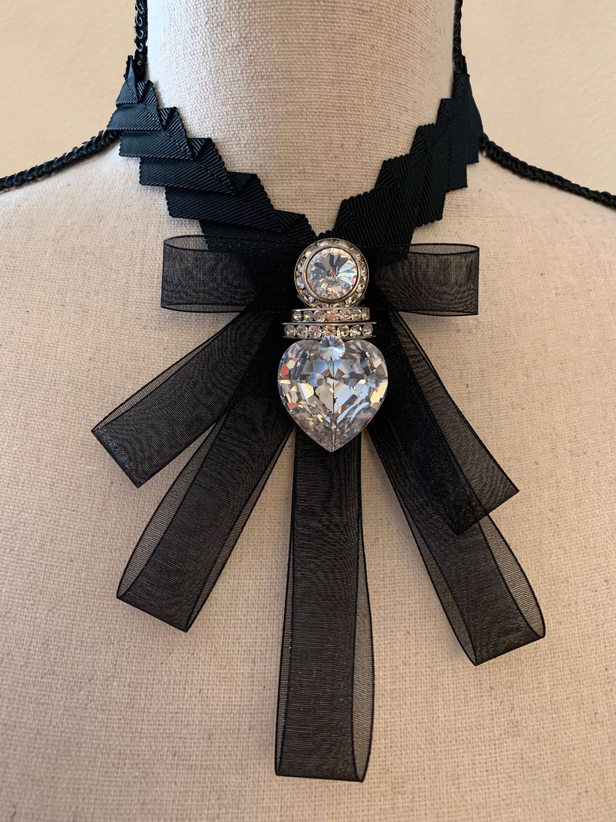 3 years ago I started working with vintage jewelry, interesting found metallic objects, period pieces and special beads. The concept is deconstructive/reconstructive, combining sculpting, couture and design. I have since created 150 vintage, medieval, industrial and futuristic Tie pieces.