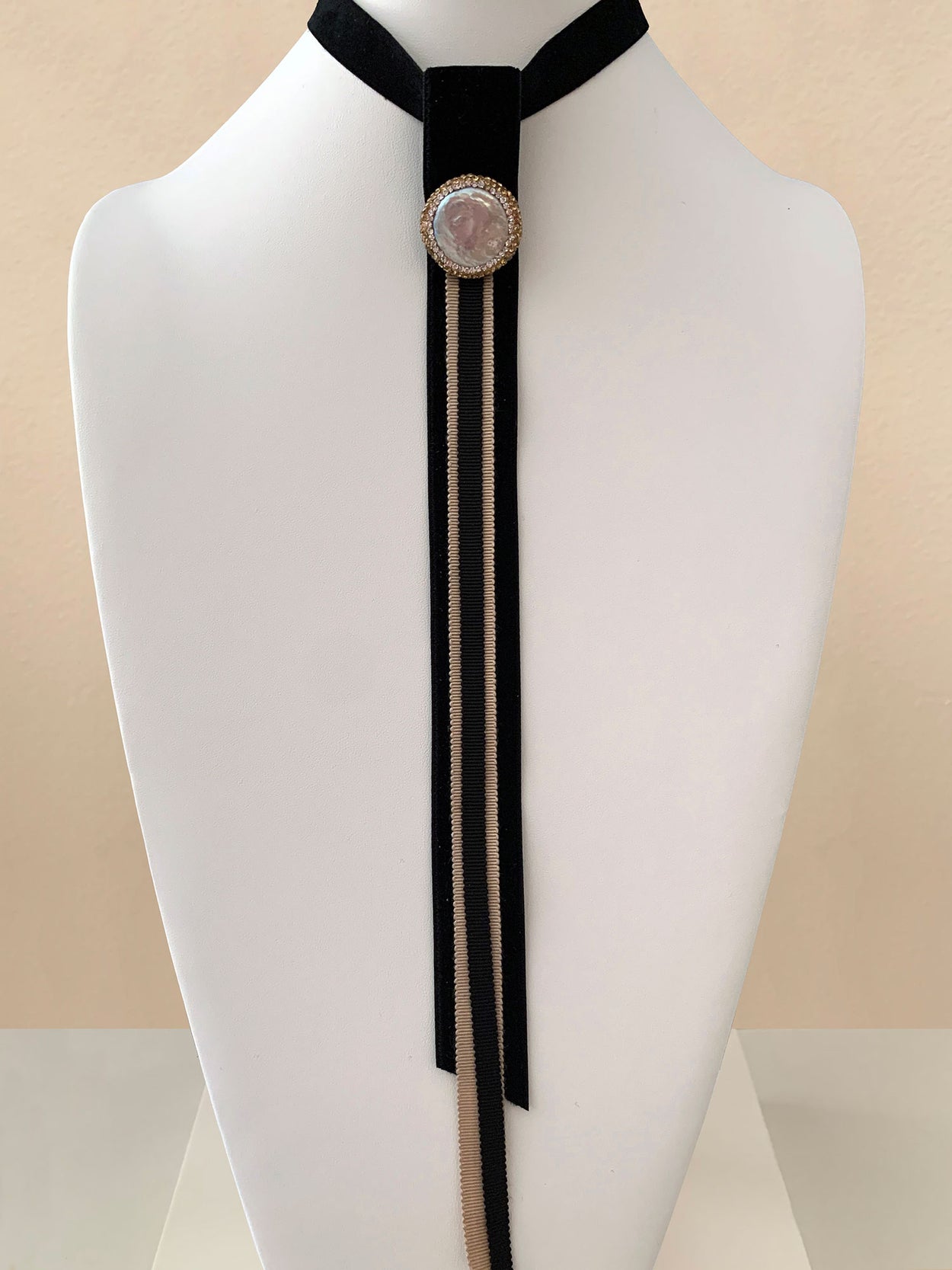 3 years ago I started working with vintage jewelry, interesting found metallic objects, period pieces and special beads. The concept is deconstructive/reconstructive, combining sculpting, couture and design. I have since created 150 vintage, medieval, industrial and futuristic Tie pieces.