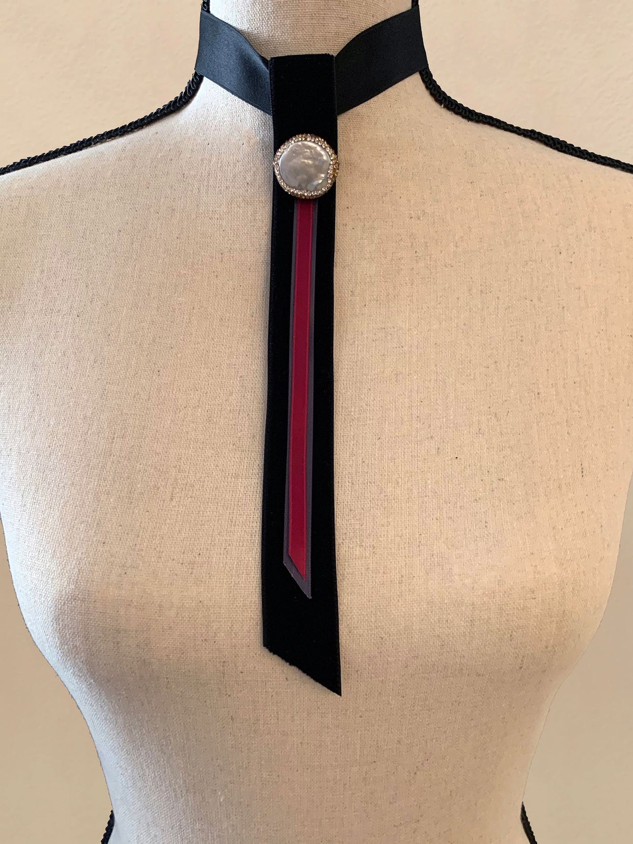 3 years ago I started working with vintage jewelry, interesting found metallic objects, period pieces and special beads. The concept is deconstructive/reconstructive, combining sculpting, couture and design. I have since created 150 vintage, medieval, industrial and futuristic Tie pieces.