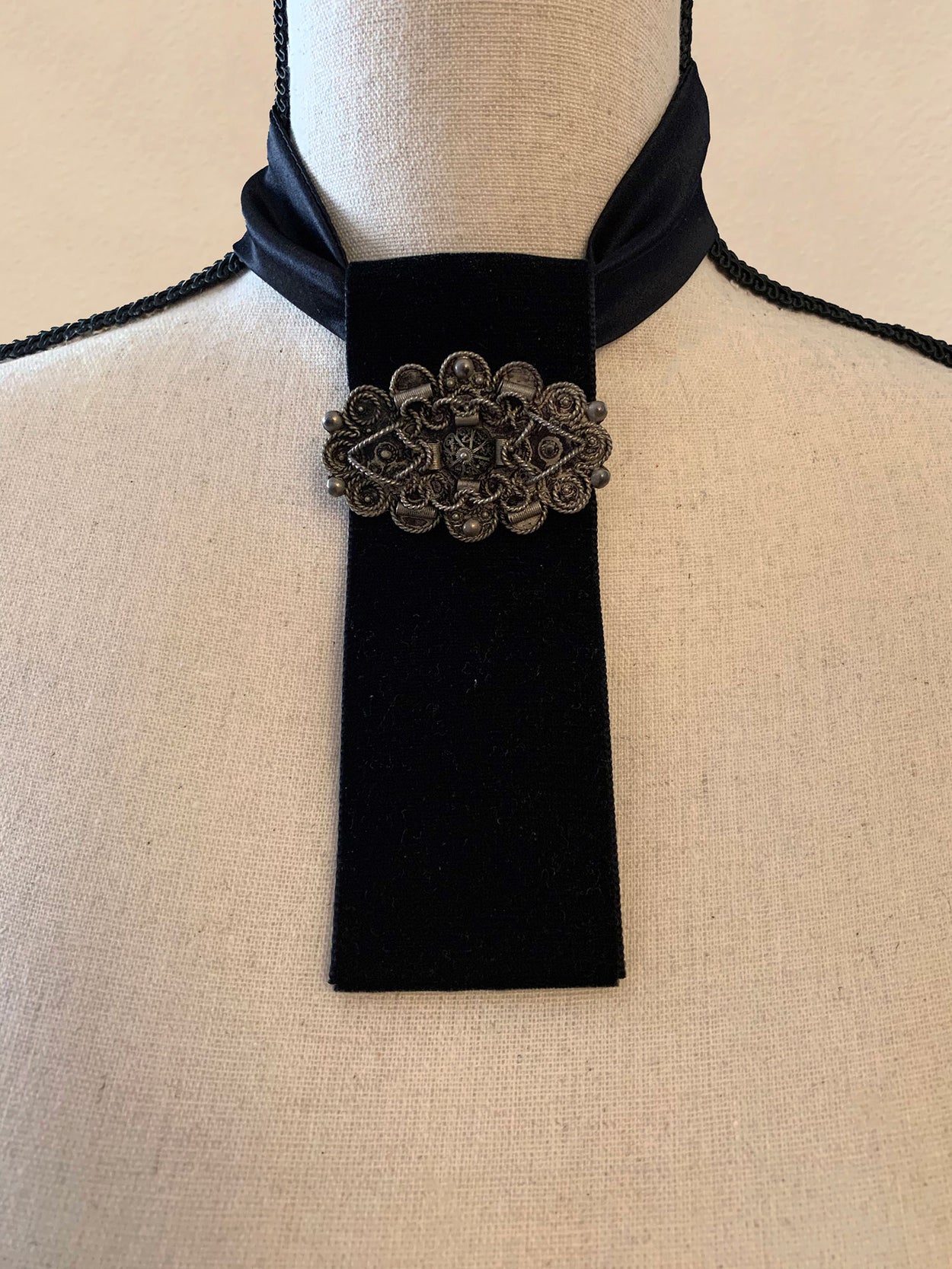 3 years ago I started working with vintage jewelry, interesting found metallic objects, period pieces and special beads. The concept is deconstructive/reconstructive, combining sculpting, couture and design. I have since created 150 vintage, medieval, industrial and futuristic Tie pieces.