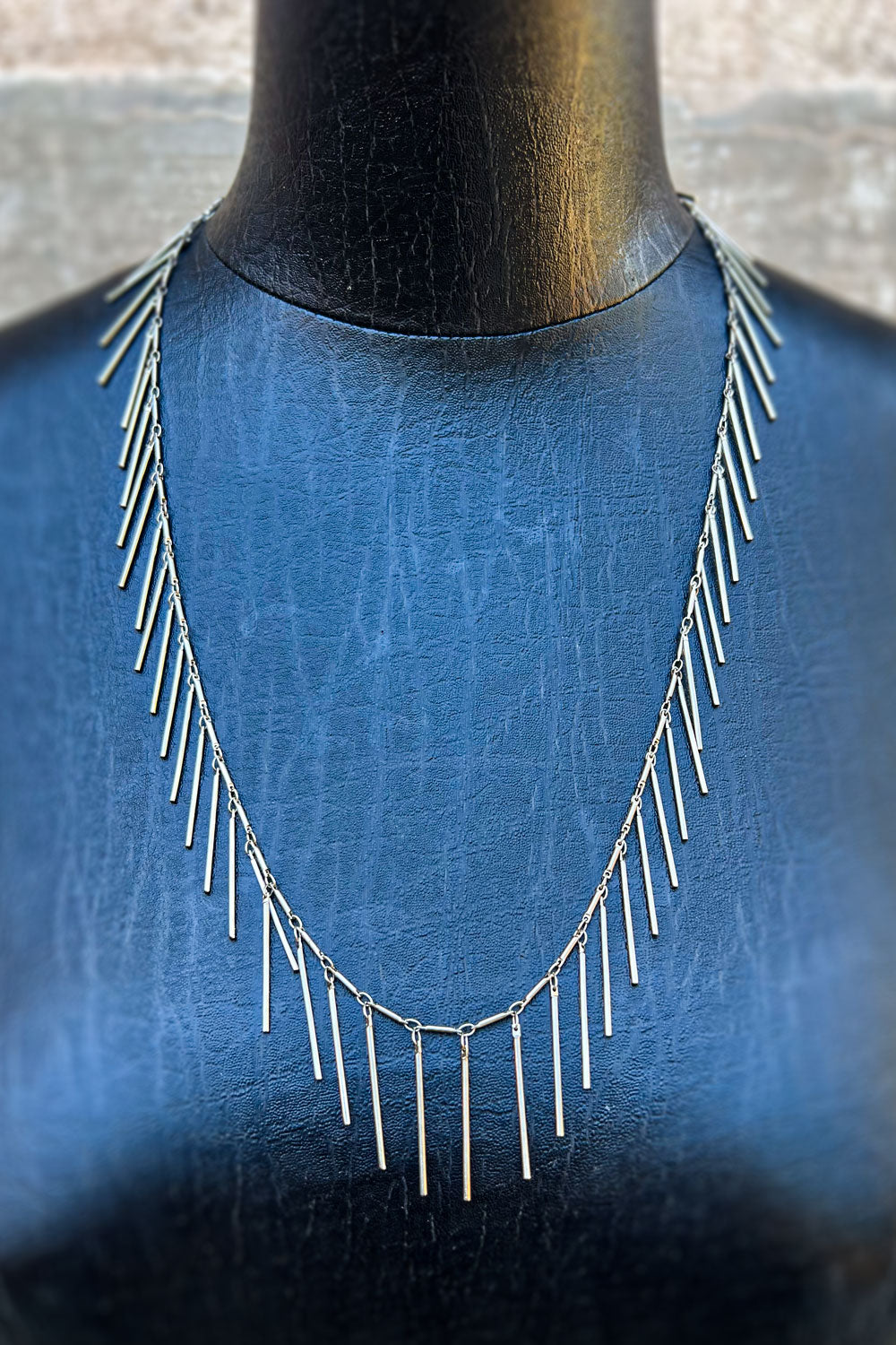 Embrace a sleek and modern look with this silver color chain-maze necklace. Designed for convenience, this accessory can be easily carried in its provided box during travels. Despite its detailed design, it remains lightweight, ensuring all-day comfort. Elevate your outfit effortlessly with this minimal modern piece