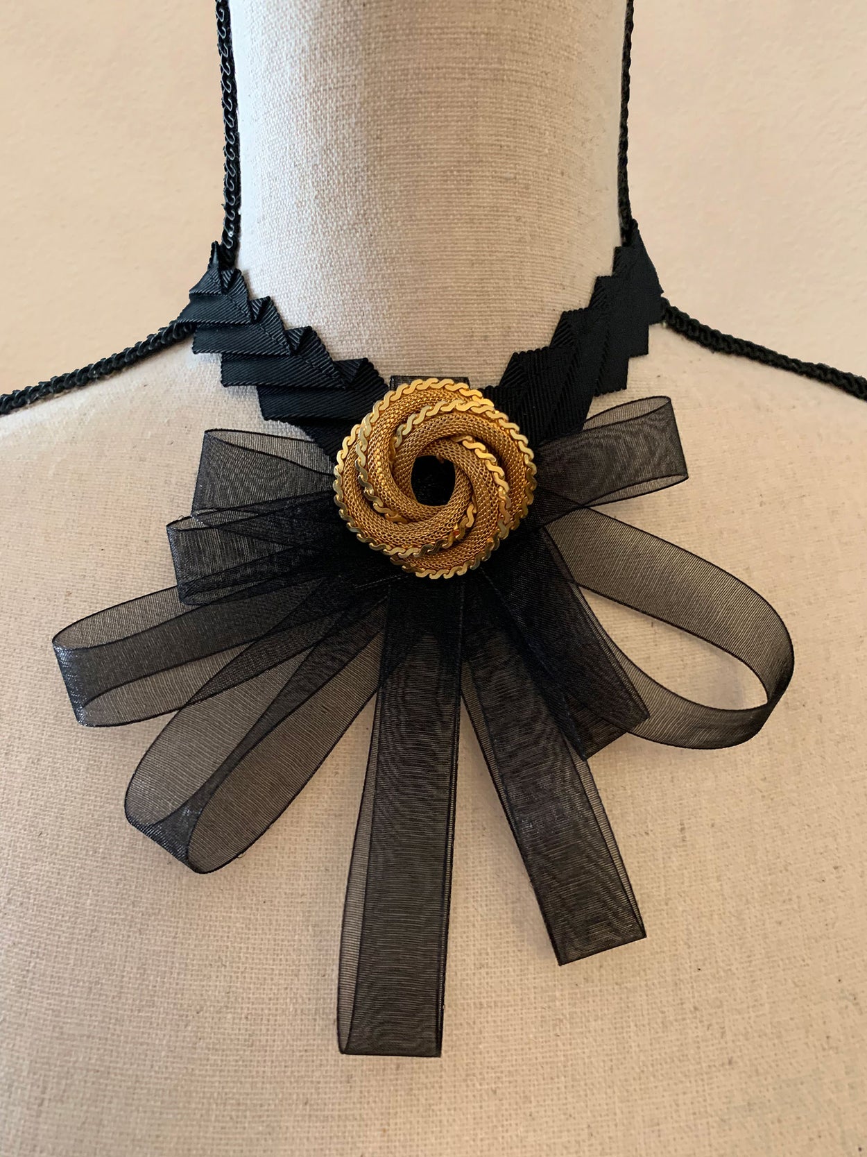 3 years ago I started working with vintage jewelry, interesting found metallic objects, period pieces and special beads. The concept is deconstructive/reconstructive, combining sculpting, couture and design. I have since created 150 vintage, medieval, industrial and futuristic Tie pieces.