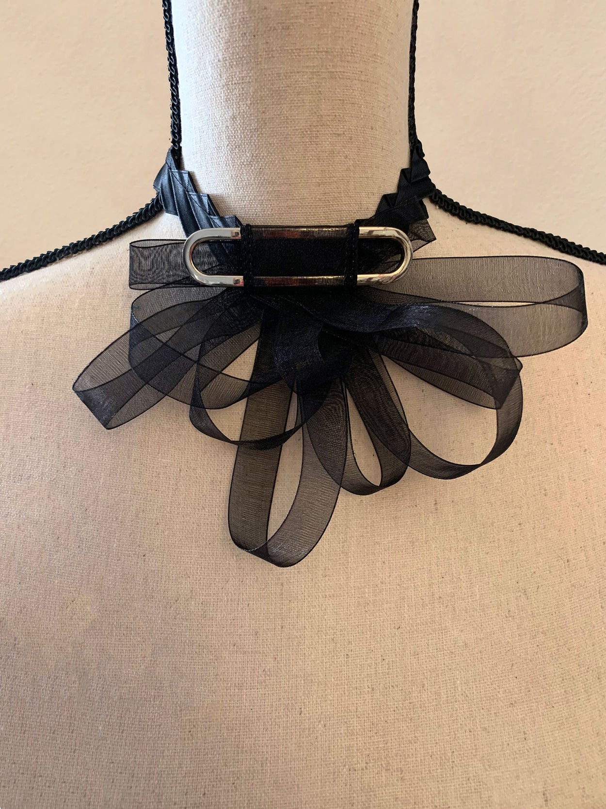 3 years ago I started working with vintage jewelry, interesting found metallic objects, period pieces and special beads. The concept is deconstructive/reconstructive, combining sculpting, couture and design. I have since created 150 vintage, medieval, industrial and futuristic Tie pieces.
