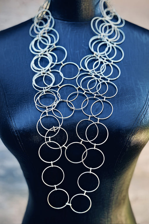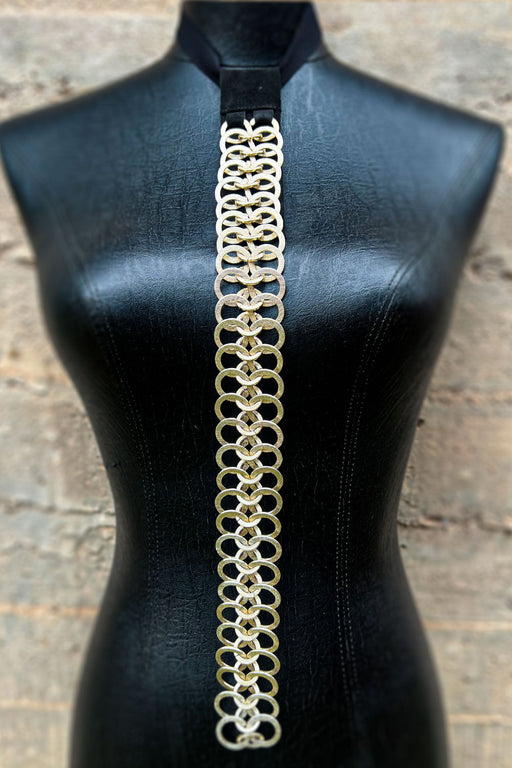 3 years ago I started working with vintage jewelry, interesting found metallic objects, period pieces and special beads. The concept is deconstructive/reconstructive, combining sculpting, couture and design. I have since created 150 vintage, medieval, industrial and futuristic Tie pieces.